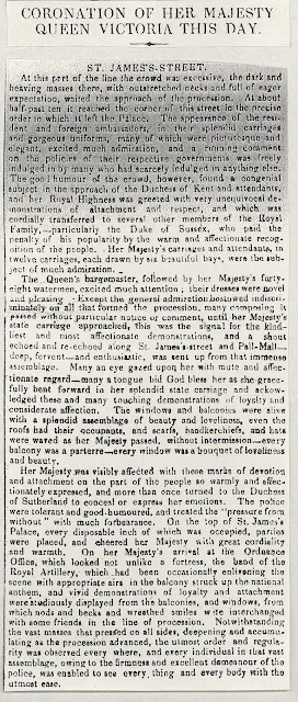 The anniversary of the Coronation of Queen Victoria 28 June 1838