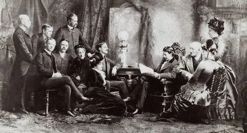 Augustin Daly and Alfred Tennyson’s son Hallam discussing structural theatrical